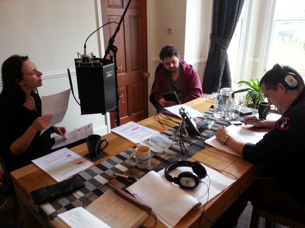 Due to hardware and (lack of) studio constraints, voice actors were recorded individually. We’ll take a look at the H4N and associated hardware setup in a later blog post, but suffice to say that we ended up with this sort of thing:-