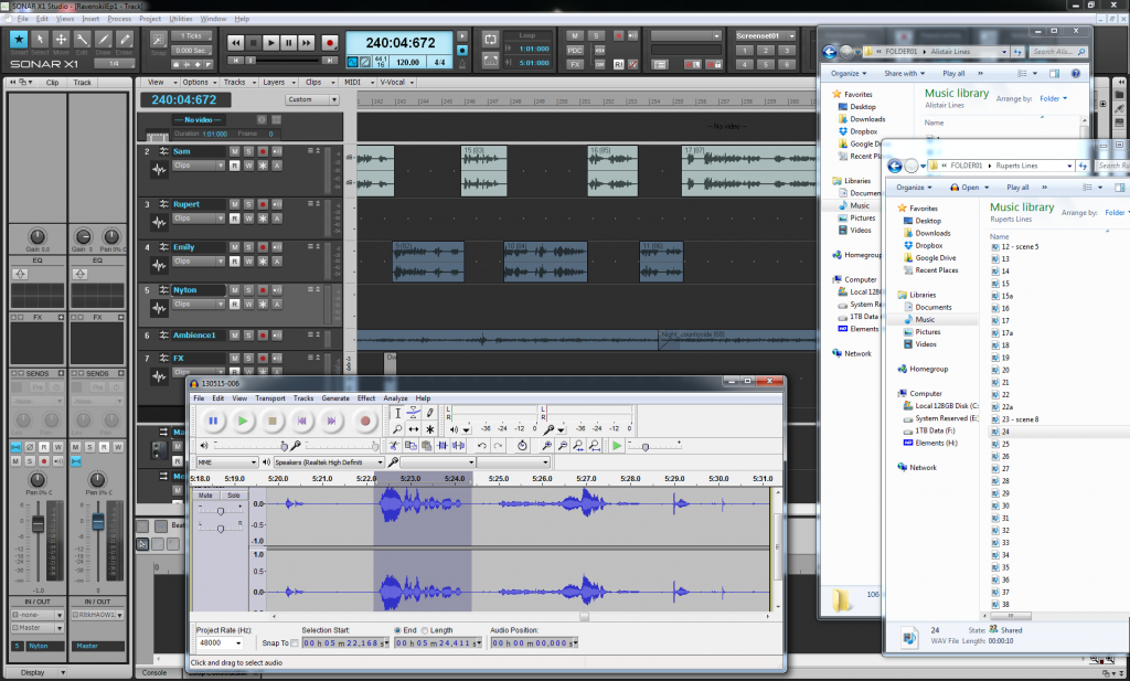 Our Ravenskil project has been ticking along for some years now and has reached the stage where the majority of the voice recording is complete and we’re starting to pull the episodes together. There are eight of these in total, each coming in at thirty minutes in length – so you can imagine the vast amount of raw audio we’ve recorded in the form of takes and re-takes (and out-takes) which needs sorting through and editing into a final product.